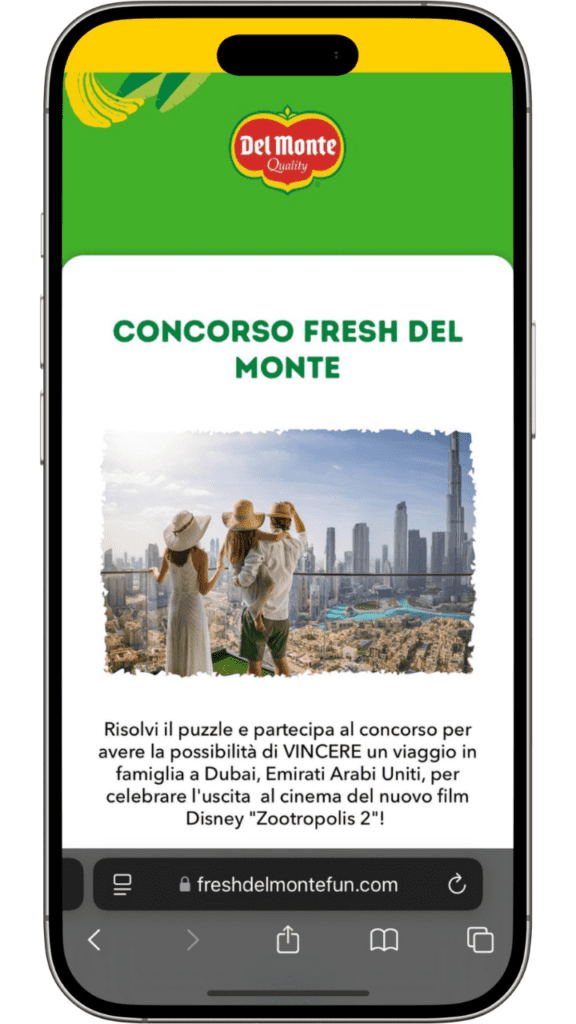 Scopri il nuovo concorso Del Monte internazionale “Enter for a Chance to Win a Trip For Four to Dubai”! In palio un viaggio a Dubai per te e la tua famiglia!