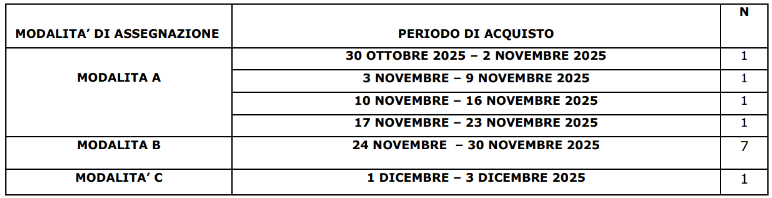 | Validità | Dal 30 ottobre al 3 dicembre 2025 |