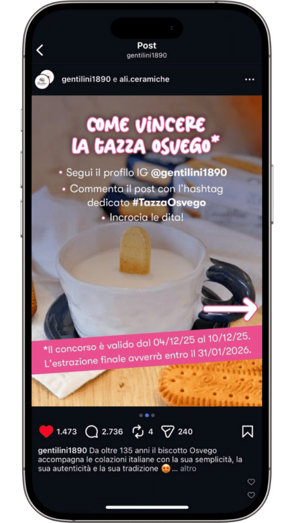 Per poter partecipare alla manifestazione a premi, dovrai andare sulla pagina Instagram ufficiale del promotore @gentilini1890, una volta che sarai sulla pagina del promotore:
